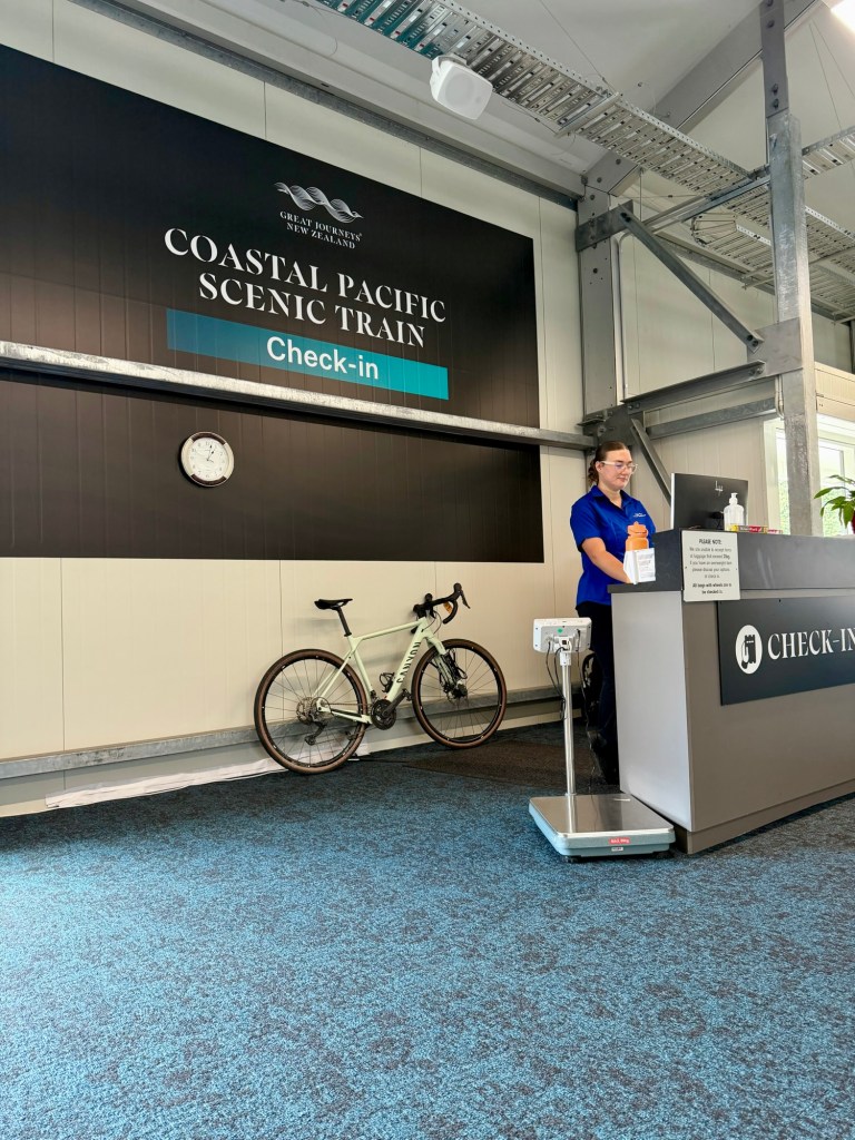 Ich frage an der Rezeption, ob die auf mein Gepäck aufpassen können. Machen Sie.