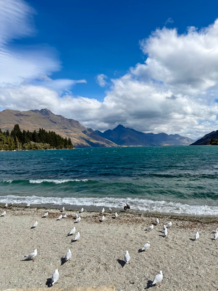 Nachdem ich mein Gepäck erneut in der Touristinfo untergebracht habe, drehe ich eine Runde durch die Queenstown Gardens und esse erneut einen vegetarischen Pie.