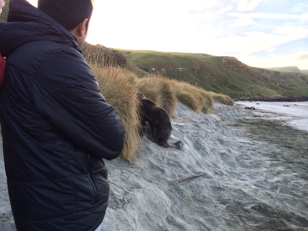 Ach ja und wir haben Albatrosse beobachtet. Ganz schön groß so’n Ding: Flügelspannweite 3 Meter. Wie alles in Neuseeland lässt sich diese Größenordnung nur schlecht nachvollziehen, wenn ein gigantischer Vogel in einer gigantischer Landschaft an einem vorüber zieht. Ich glaub, man müsste sich selbst sehen können, um zu begreifen wie groß der Vogel wirklich ist. Zwar hab ich gefühlte 100 Fotos, aber auf Keinem ist die Größe zu erkennen, weil sonst nur Himmel im Hintergrund ist.