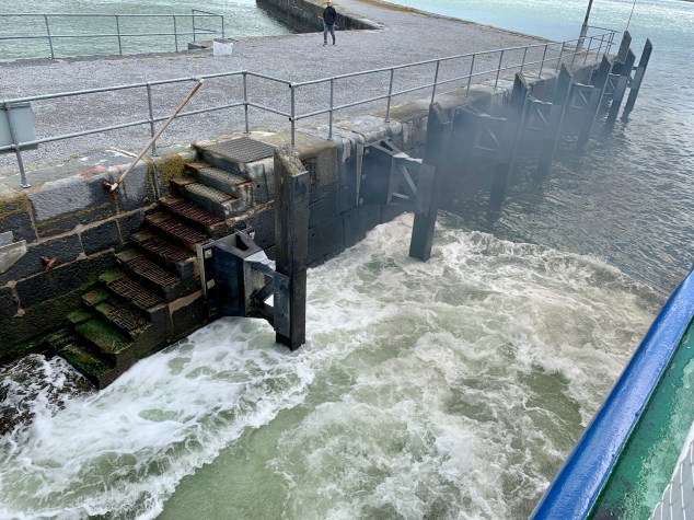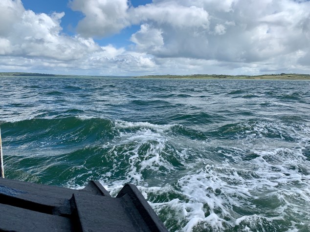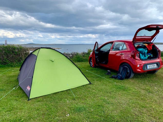 Nach Dingle sollte es nach Lahinch gehen. Einem irischen Surferparadies, wo Franzi sich gerne ein Brett ausleihen wollte. Da mir Wasseraktivitäten dieser Art nicht liegen, wollte ich mir ein bisschen die Beine vertreten. Am Abreisetag ging irgendwie alles viel schneller als sonst. Zelt abbauen war ja nicht nötig – nur Stulle schmieren und das geht im Schlaf. Auch der Weg zur Toilette dauert nur 5 Sekunden, statt 5 Minuten. Also ab ins Auto und los. Wer bei der Streckenführung nicht aufpasst, der landet dann doch irgendwann auf dem Wasser. Ich hab mir den Weg nicht genau angeschaut und zack war ein Stück des Weges mit der Fähre zurückzulegen.