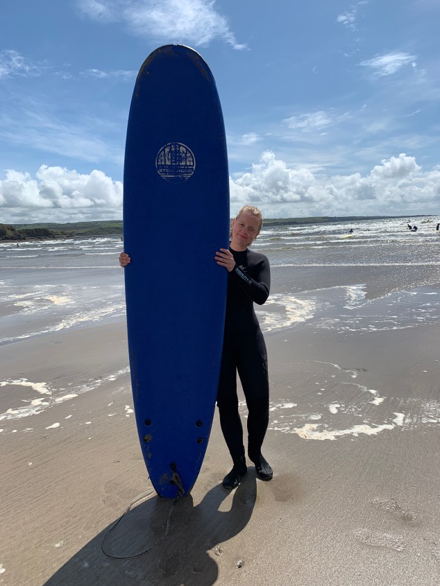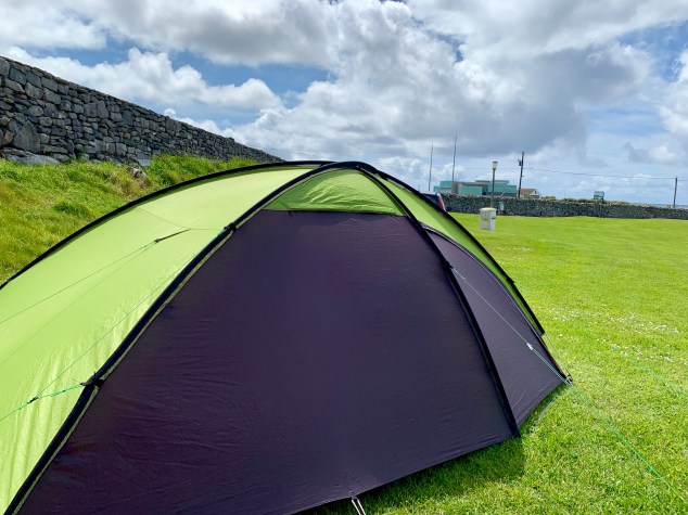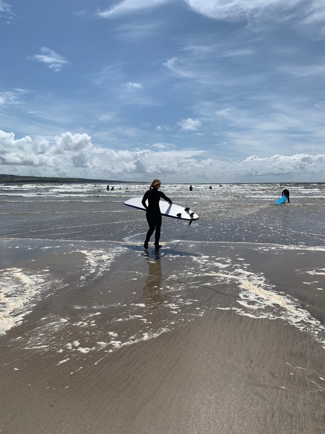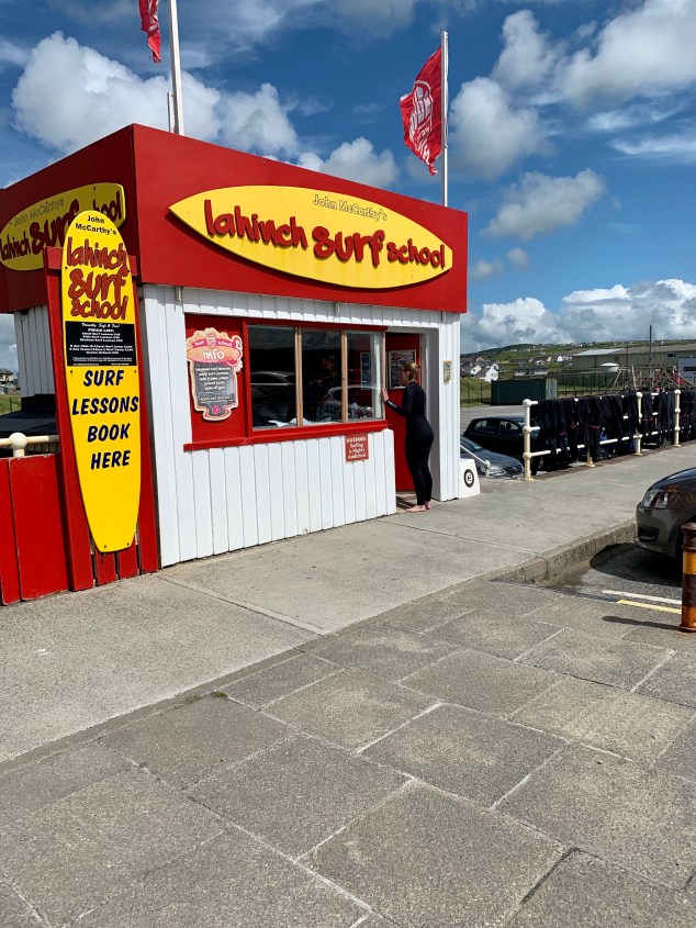 Nach der Ankunft erstmal Zelt – mit Blick auf die Cliffs of Moher – aufstellen und ab nach Lahinch. Schnell haben wir einen Surfshop ausgemacht und da geht es auch schon Richtung Strand.