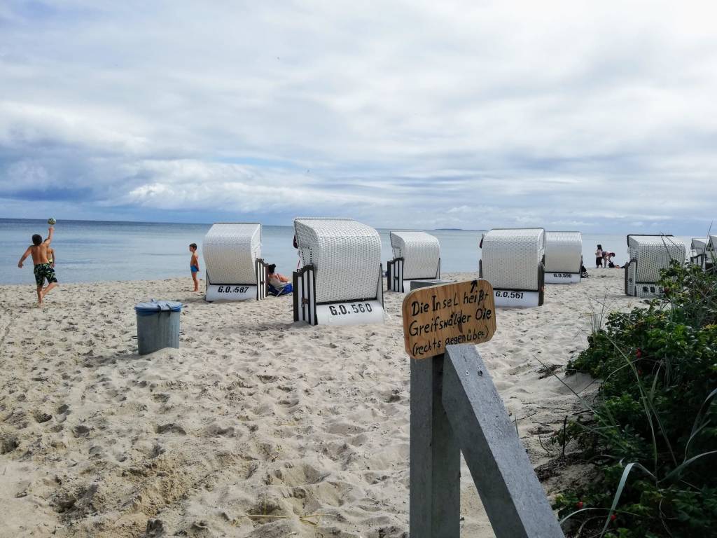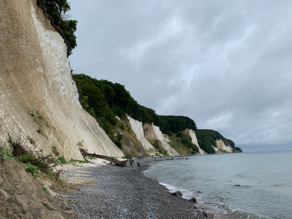 Wer uns kennt, der weiß, dass wir gerne viel und vorzugsweise draußen unterwegs sind. Um uns die Beine zu vertreten und gleichzeitig die Kreidefelsen aus der Nähe betrachten zu können, sind wir auf Rügen von Sassnitz nach Lohme gelaufen. Immer schön am Wald an der Küste entlang. Ein sehr schöner Weg, auf dem uns viele Wanderer mit weißen Beinen entgegen gekommen sind. An manchen Stellen ist es möglich nach unten an den Strand zu gehen und da kommt man mit Kreide in Berührung – ob man will oder nicht. Kreide eignet sich nicht nur um z. B. Wandfarbe herzustellen. Eine Behandlung auf der Haut ist ebenfalls angesagt, was Einige zum Anlass genommen haben, sich die Beine damit zu bepinseln. Je näher man dem sogenannten Kaiserstuhl kommt, desto voller wird es. Der Kaiserstuhl ist aus Holz, steht vor beeindruckender Kulisse und hat als Verzierung ein kleines Krönchen auf. Um diesen Sitz haben wir einen großen Bogen gemacht, denn die Leute standen (wie zu echten Kaiserzeiten) Schlange, um einmal Platz nehmen zu können. Wir Menschen sind schon interessante Erdbewohner.