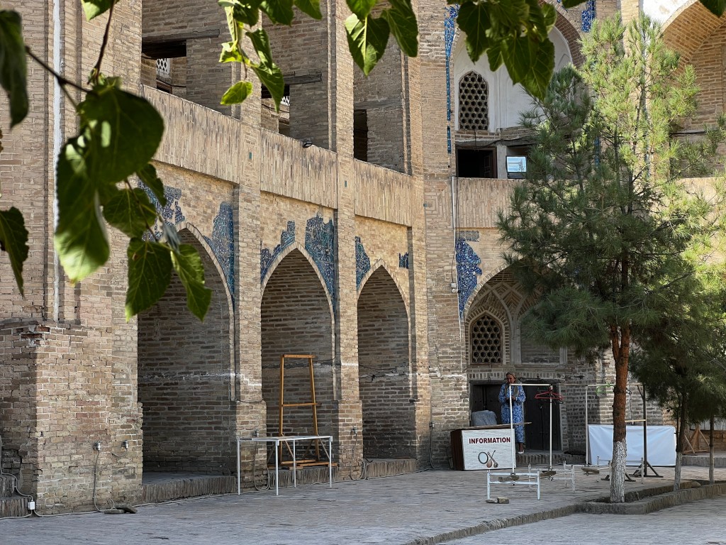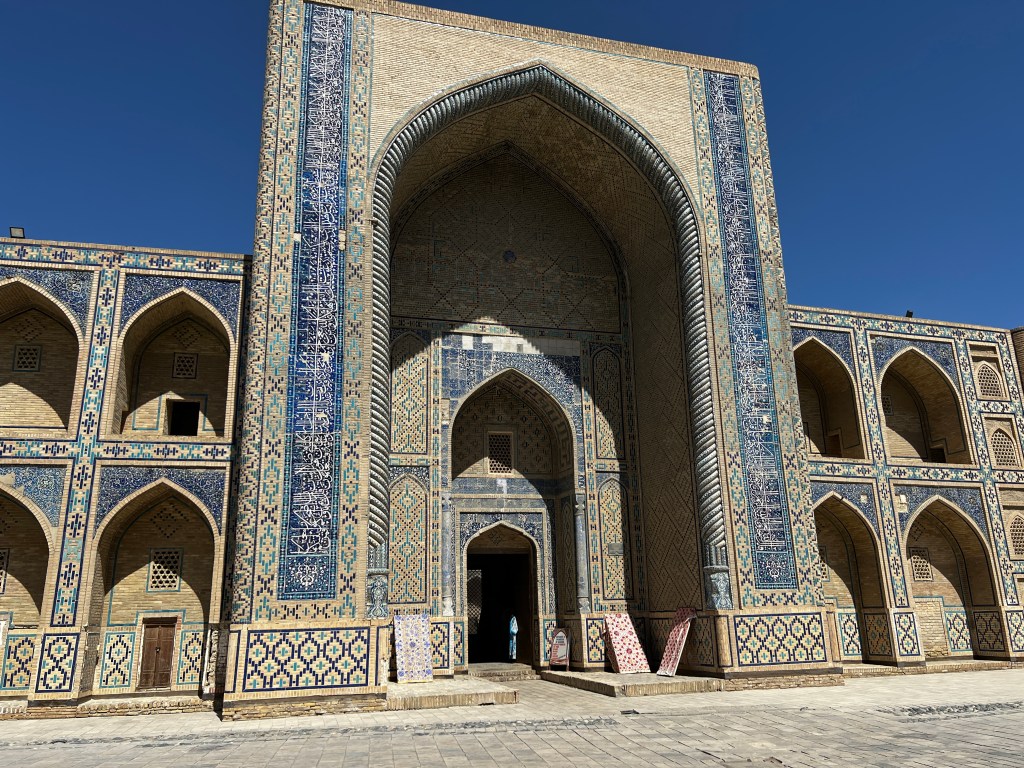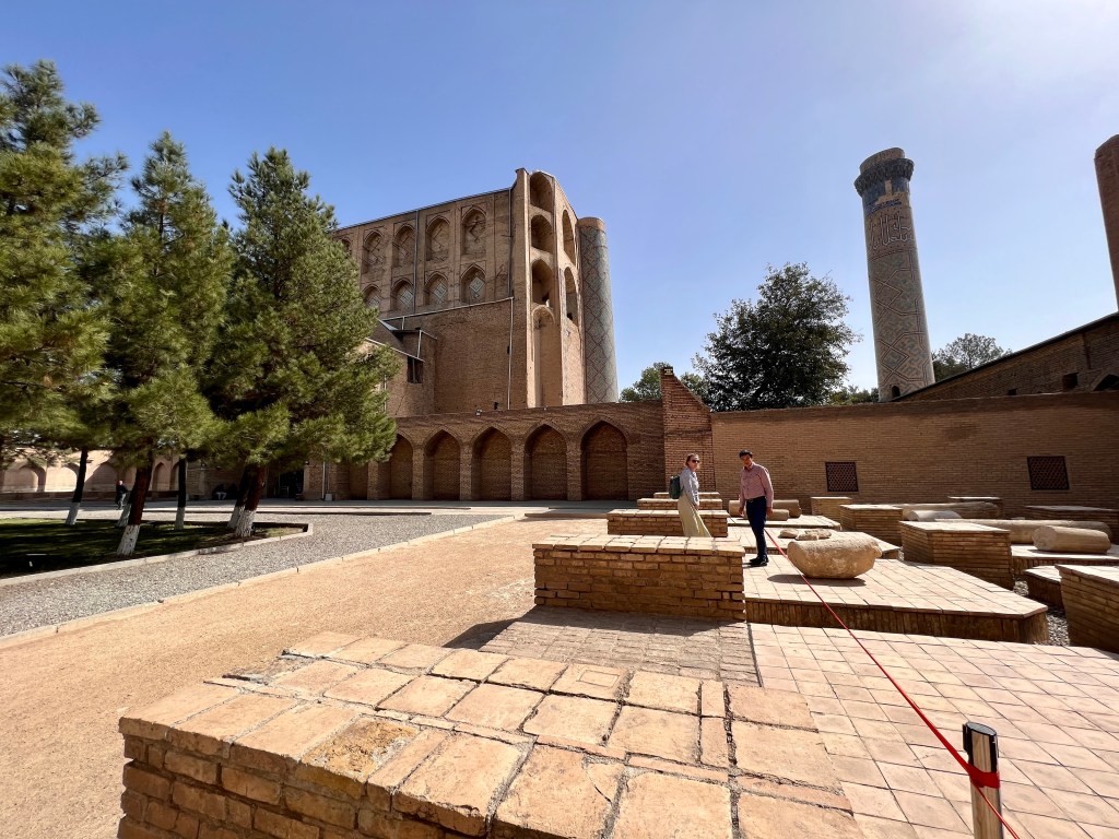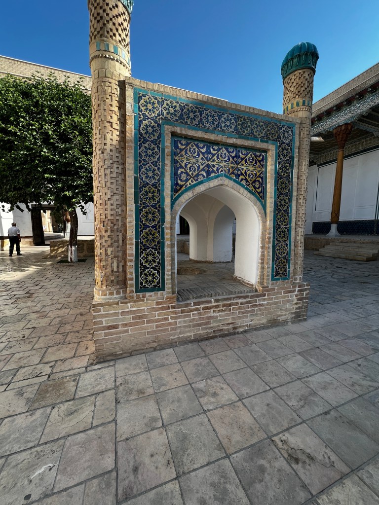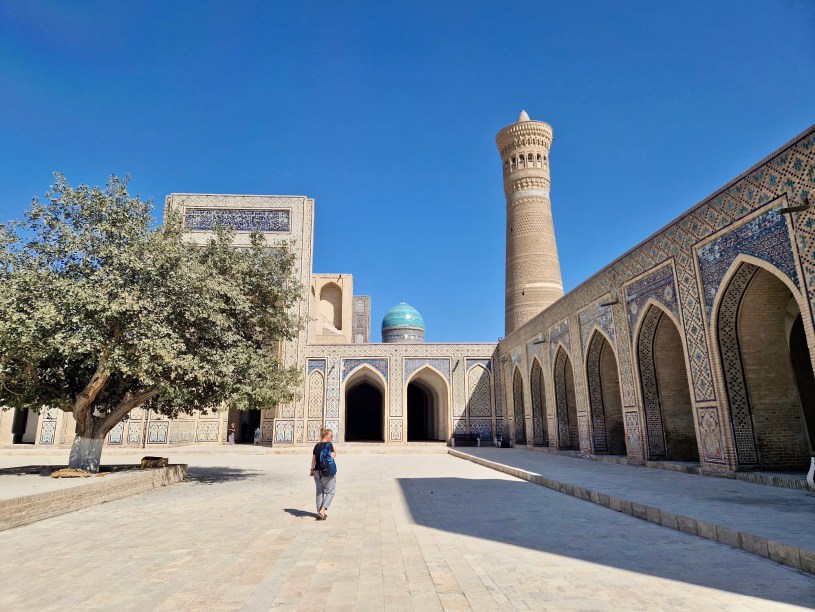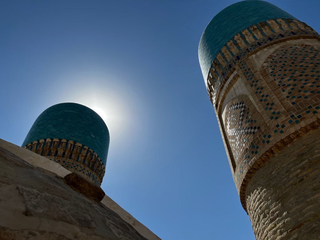 Zum nächsten Komplex den wir betreten, gehört ein Minarett, eine Medrese und eine Moschee, die einem Stellvertreters eines Khans gehörte: Sayyid Islom Xo‘ja. Dabei handelt es sich um das höchste Minarett Usbekistans mit 57 Metern und 118 Stufen. Es wird heute als Museum genutzt.
