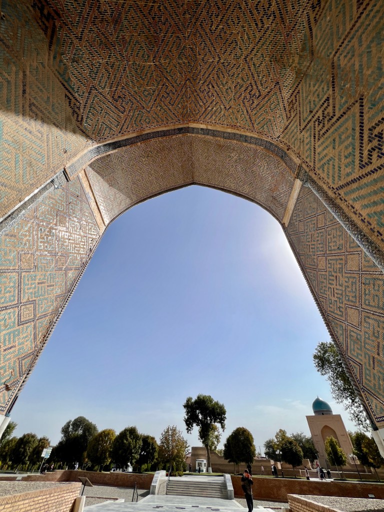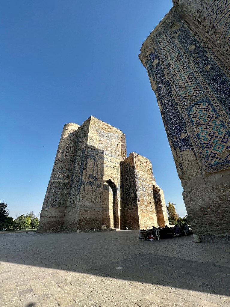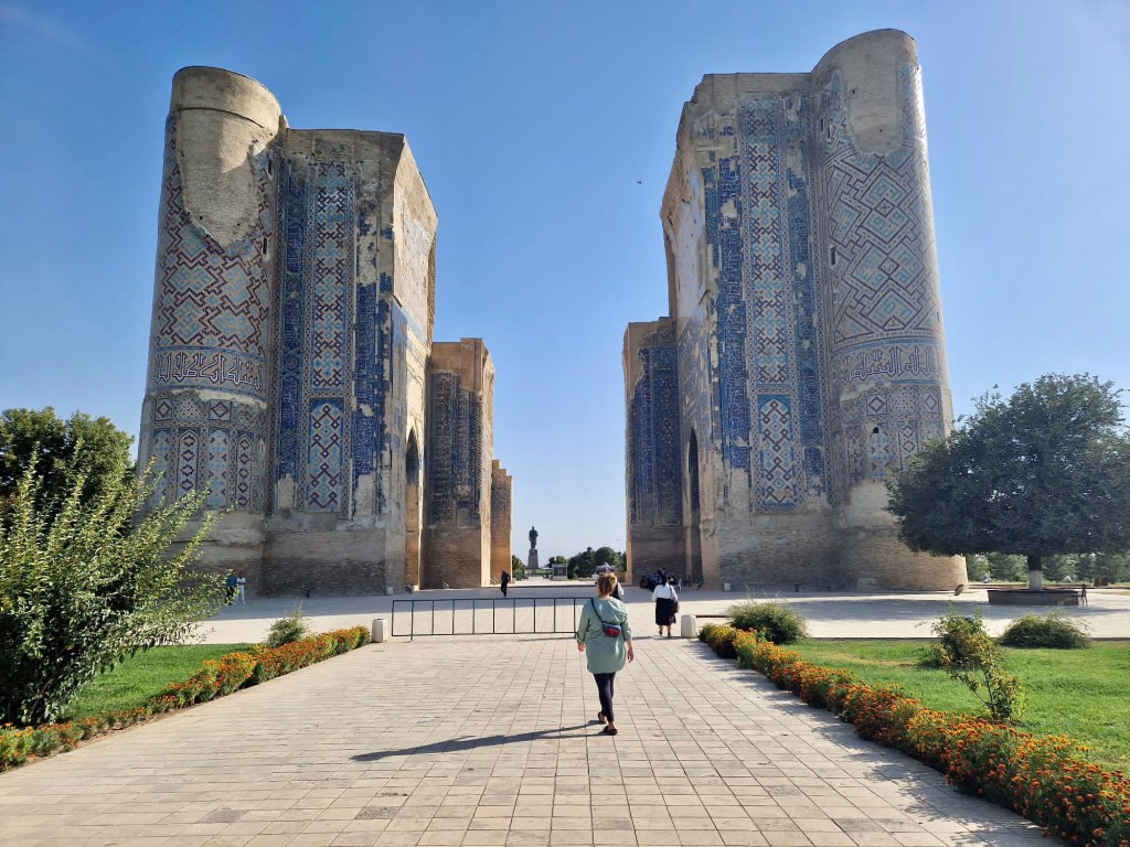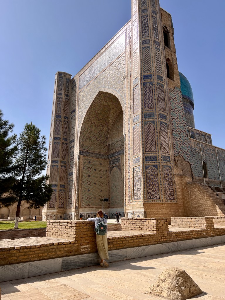 Nebenbei hat sich die Lieblingsfrau rausgeholt gegenüber eine Moschee und Medrese für Frauen bauen zu lassen. Als Amir über die vielen Hügel nach Samarkand zurückkehrte erblickte er neben dem zu erwartenden Bauwerk ein Unbekanntes. Da ließ er gleich zu den Waffen rufen und ließ die Moschee seiner Lieblingsfrau größtenteils in Schutt und Asche legen.