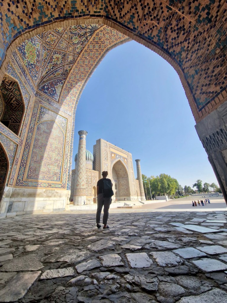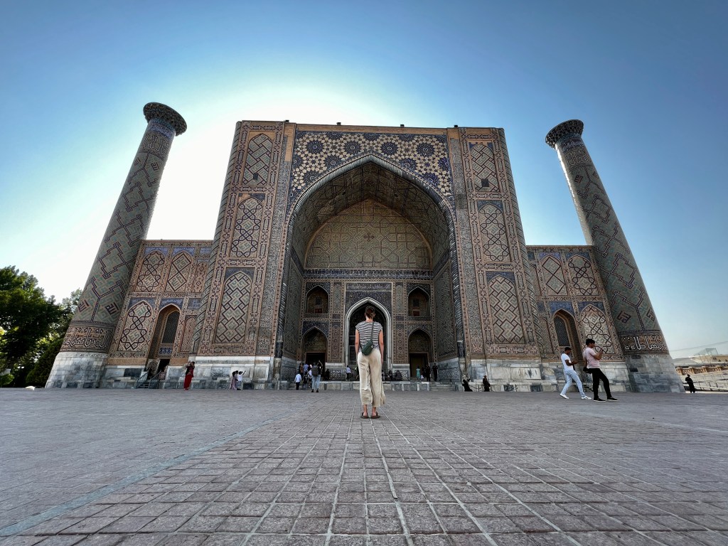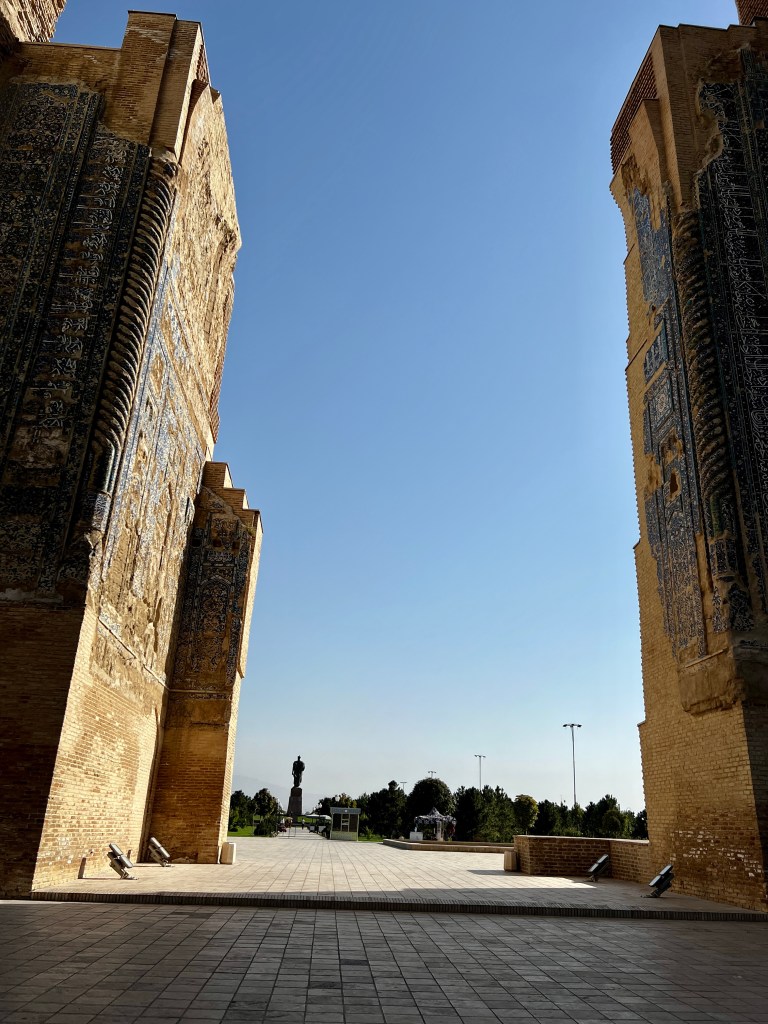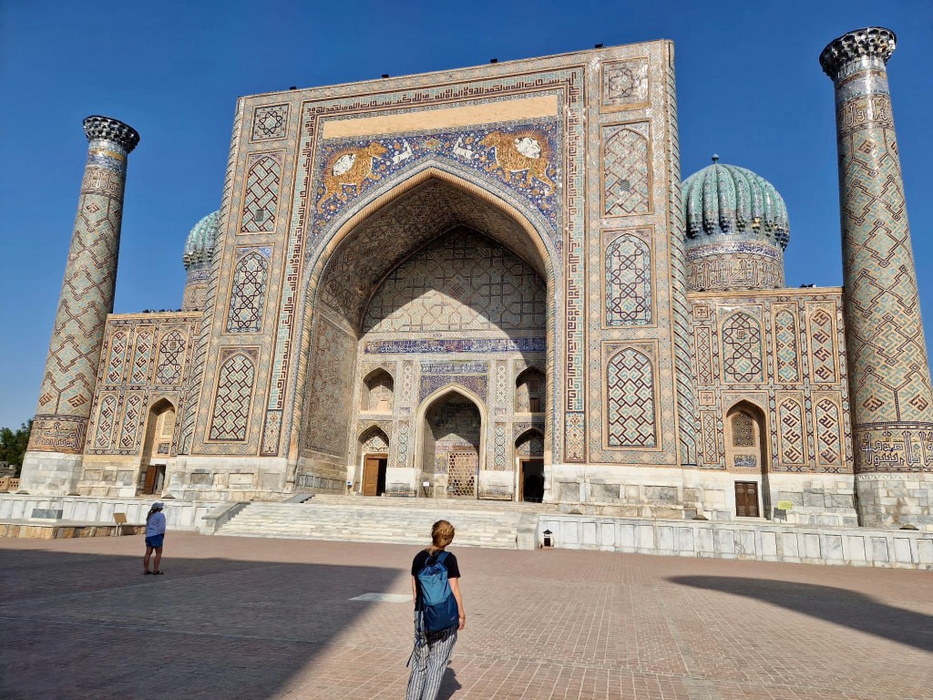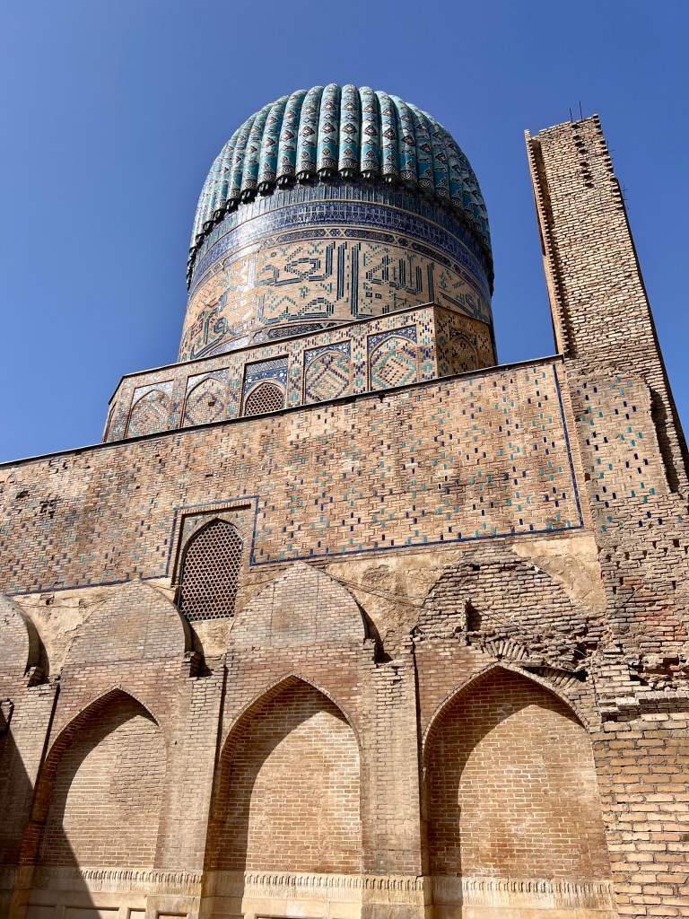 Nebenbei hat sich die Lieblingsfrau rausgeholt gegenüber eine Moschee und Medrese für Frauen bauen zu lassen. Als Amir über die vielen Hügel nach Samarkand zurückkehrte erblickte er neben dem zu erwartenden Bauwerk ein Unbekanntes. Da ließ er gleich zu den Waffen rufen und ließ die Moschee seiner Lieblingsfrau größtenteils in Schutt und Asche legen.