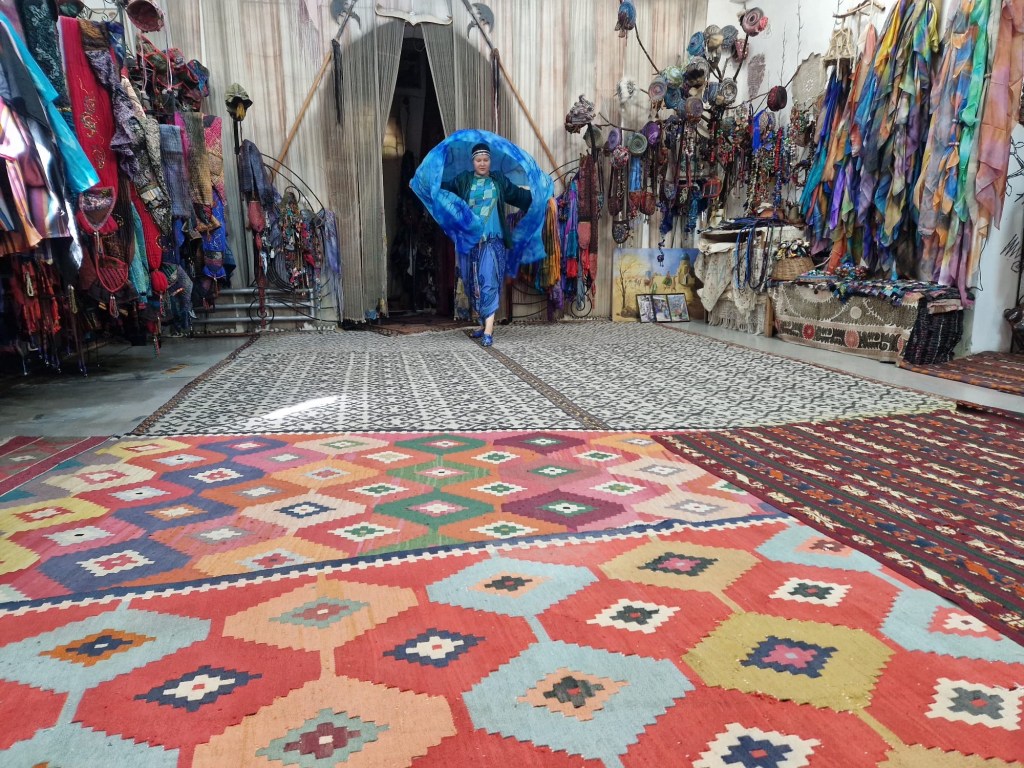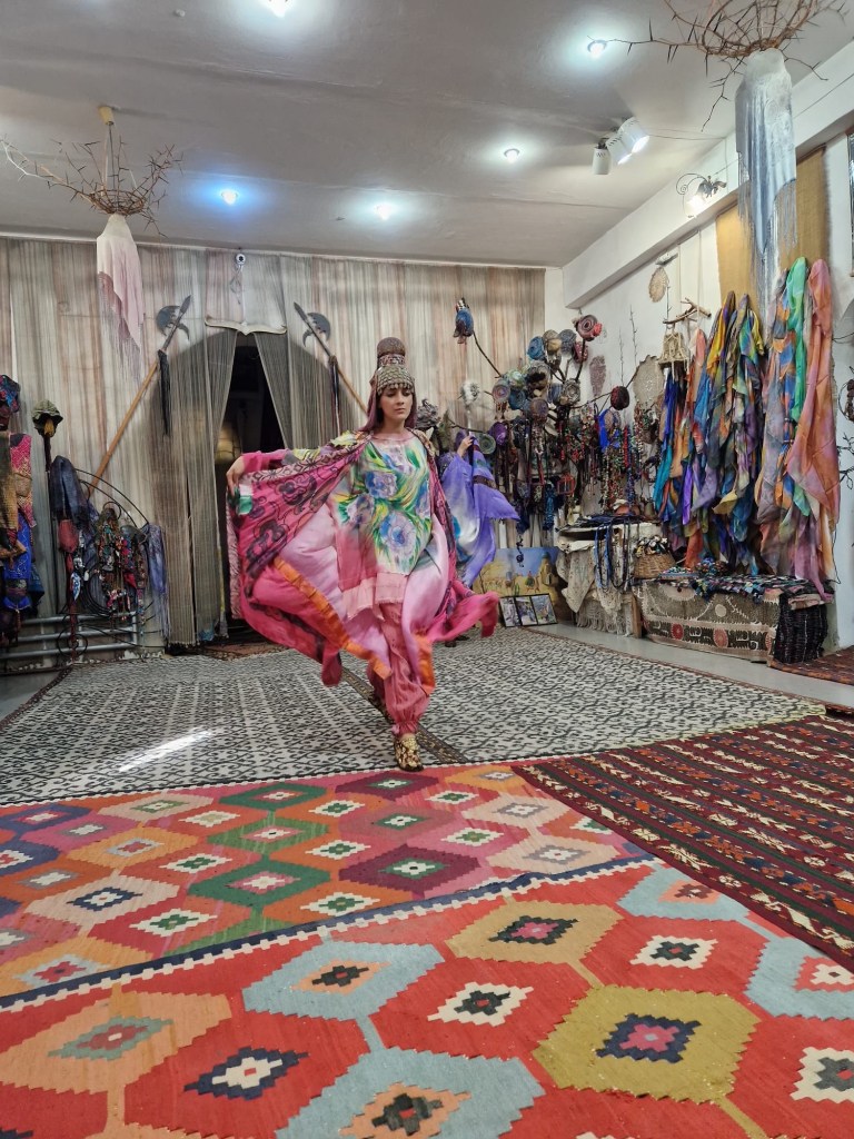 Am Ende erfahren wir, dass es sich um eine Darbietung aus orientalischen Märchen handelt und die russische Dame alle Kostüme (es waren unzählige) selbst entworfen und geschneidert hat. Hut ab. In einer Mischung aus Tradition und Moderne. Besser kann ich das nicht beschreiben. Es war wirklich cool, nur waren wir erstmal verwirrt, weil wir nicht wussten, was uns erwartet. Galerie ist entweder ein Übersetzungsfehler oder in Usbekistan ein dehnbarer Begriff. 😉 Jedenfalls ein sehr interessanter letzter offizieller Programmpunkt, in diesem vielfältigen Land.