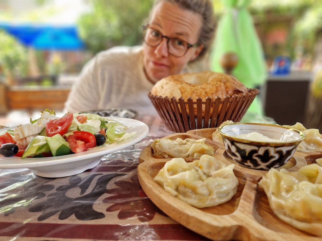 Ein frischer Salat, Manti und Brot zum Abgewöhnen