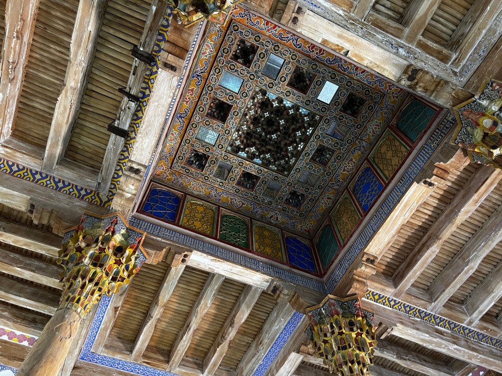 Dieses Gebäude wirkt etwas untypisch von der Architektur her und es kommt auch gänzlich ohne Fliesen aus. Dieses Gebäude gehörte einem Stoffhändler, der viel in Europa unterwegs war. Der Khan war nicht nur der oberste Chef, sondern gleichzeitig auch das Bauamt. Er genehmigte schließlich den Bau dieses Komplexes.