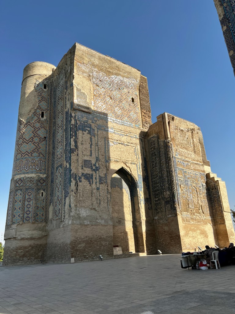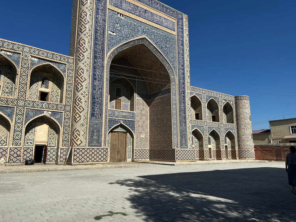 Nach der etwas farblos wirkenden Festung steigen wir ins Auto. Von der gestrigen, sehr geschmeidigen Fahrweise ist heute kaum noch was zu erkennen. Heute fährt er wie Uli (die versteht was ich meine 😜). Unser Reiseleiter entdeckt eine Medrese als wir vorbei fahren. Der Fahrer geht in die Eisen und wir springen für einen kurzen Fotostopp raus.