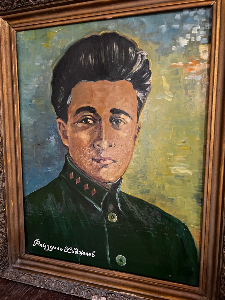 Letzter Stopp vor dem Mittagessen. Wir besuchen das Haus von Me’Morchilik Yodgorligi Pahlavon Mahmud. Er wurde mit Erlaubnis des Khans zu Hause begraben. Er war ein sehr bekannter Ringer, Kürschner und ebenfalls Dichter. Verheiratet war er nie, weil er glaubte, dass lenkt ihn ab.