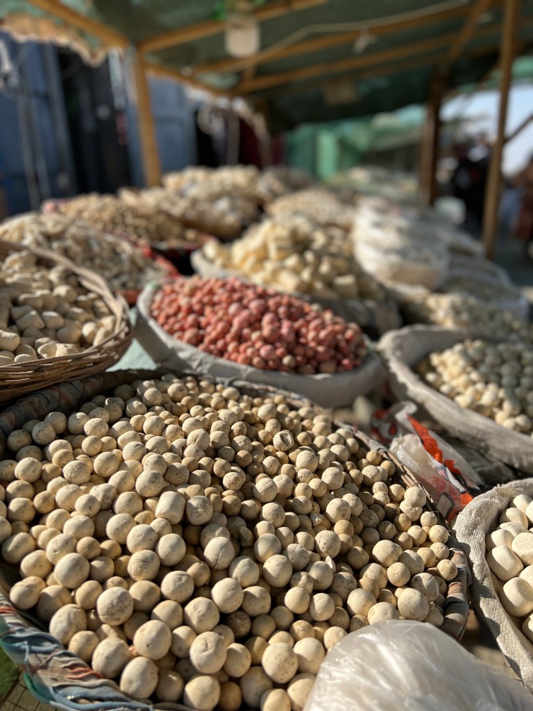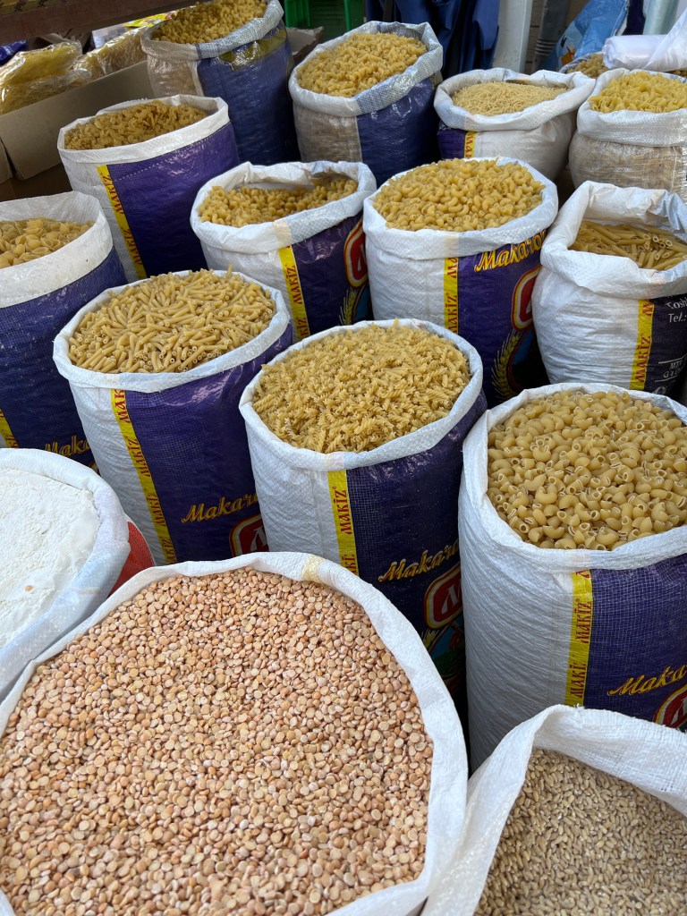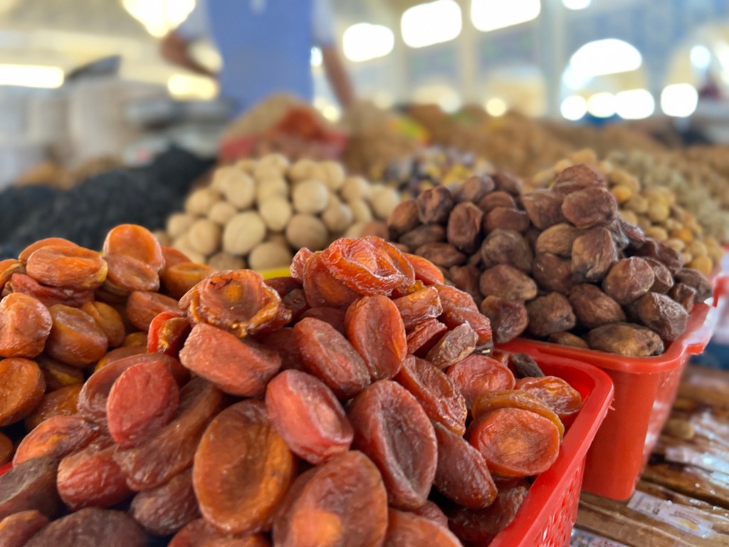Hier kauft man auf dem Markt groß ein. Und übrigens der ganze Basar ist ein „Unverpacktladen“. Man kann eine Schraube, ein Stück Seife, drei Paar Socken, alles für eine Hochzeit, Wischmöppe, Regale, Schachlik-Spieße, Ofenhandschuhe, Plow, Pflaumen, Nüsse, Zwiebeln, oder was Euch immer einfällt in der gewünschten Anzahl kaufen.