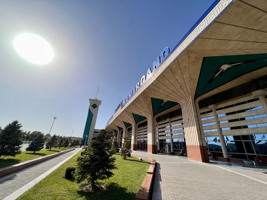 Die letzten Kilometer legen wir im Zug mit dem klangvollen Namen Afrosiyob zurück. Bahnfahren läuft anders als in Deutschland. Bevor man den Bahnhof betritt, wird das Ticket und der Pass vorgezeigt. Gleichzeitig durchläuft man eine Sicherheitskontrolle und das Gepäck wird durchleuchtet. Es gibt in Samarkand ein riesiges Bahnhofsgebäude, an dem man die Sowjetzeit deutlich erkennen kann. Die Halle kann sich sehen lassen. Ich finde es verwunderlich, dass es nur ein Gleis gibt. Typisch Eisenbahner eben. Wir sind etwas zu früh und tanken vor dem Gebäude noch etwas Sonne. Kann gut sein, dass wir uns auf den letzten Metern einen Sonnenbrand eingefangen haben. 🤦🏼♀️ Kurz vor der Abfahrt dürfen wir auf den Bahnsteig. Da zaubere ich eine Fachfrage aus dem Hut. Ich frage, wie die Spurweite wohl in Usbekistan ist. Ein Bahnmitarbeiter wird konsultiert. Die Antwort lautet 1.520 mm. Mit der Auslastung gibt es in Usbekistan keine Probleme, denn alle Plätze sind stets besetzt. Muss wohl an wenigen Abfahrten liegen. Wir sitzen keine 10 Minuten im Zug und schon kommt der Bordservice vorbei. Wir wissen natürlich nicht, was die Zugfahrt kostet und fühlen uns trotzdem fürstlich versorgt. Es dauert nicht lange und dann kommt der nächste Mitarbeiter vorbei und bietet Eis und Cappuccino an. Wir reisen wohlgemerkt in der Economy-Klasse. Wir fragen nach, ob bekannt ist, an welchem Bahnhof von Tashkent wir ankommen. Die Ankunft der modernen Züge ist wohl stets gleich.