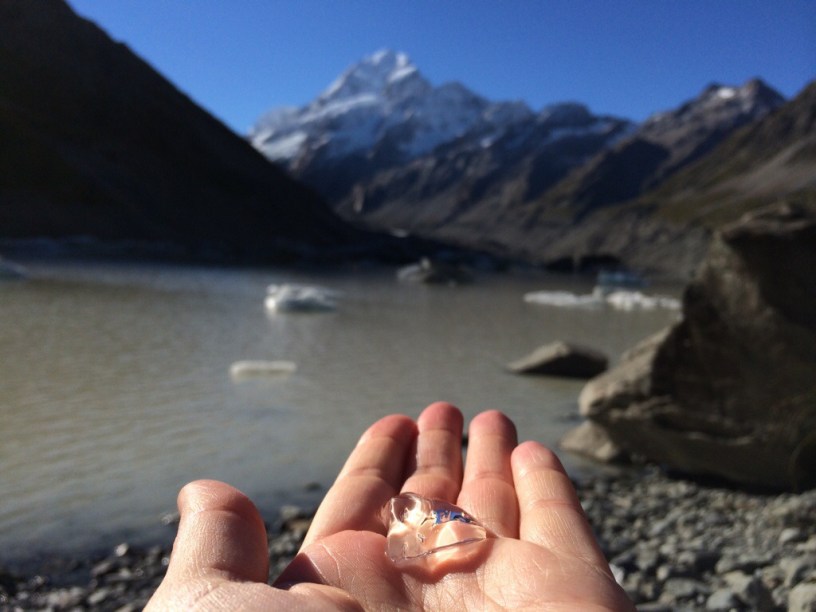 Zu der Gebirgskette gehören auch verschiedene Gletscher. Ich bin auf einem kleinen Boot über den Gletscher See des Abel Tasman Gletscher geschippert und konnte mir einige Eisschollen aus nächster Nähe angucken und auch mal kosten. Wie was? Ich soll das Eis probieren? Ne, lass mal. Schnee muss ich auch nicht unbedingt testen. Schließlich weiß ich doch nicht was da vom Himmel gekommen ist. Da das Eis ein paar tausend Jahre alt ist, war da mit von Menschenhand herbeigeführtem Klimawandel noch nicht so viel gebacken. Also äußerst erfrischend.